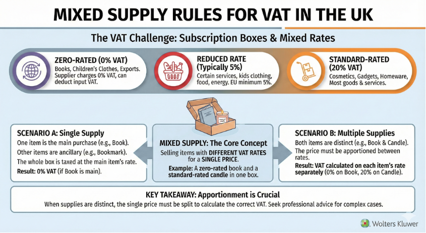 In the UK, most products are standard rated for VAT (20%). However, subscription boxes often contain items with different VAT rates.